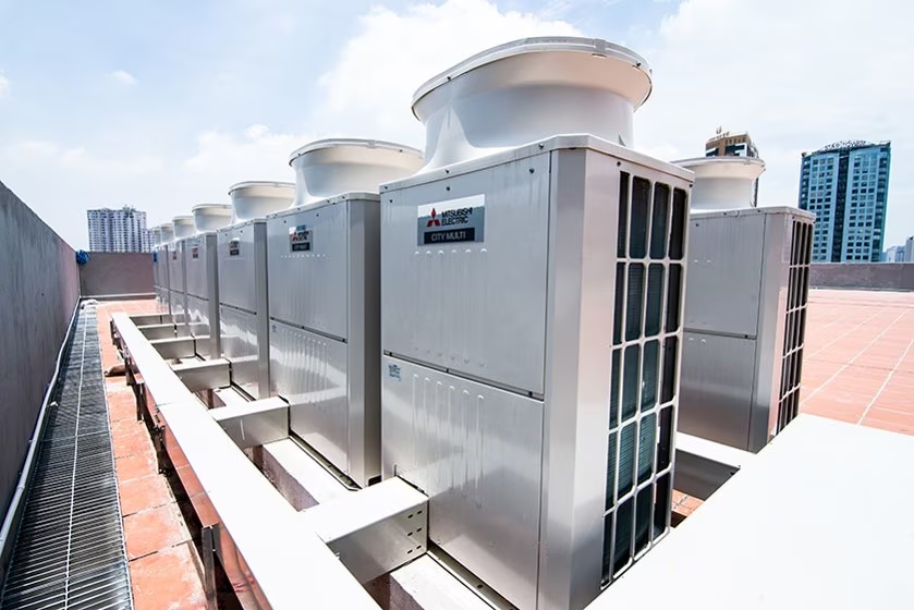 Để đảm bảo tiện nghi cho khách hàng và nhân viên làm việc tại Fornix FPT, Mitsubishi Electric đã cung cấp hệ thống điều hòa thương mại cho tòa nhà, bao gồm 4 tổ dàn nóng VRF công suất từ 28HP đến 56HP và 42 dàn lạnh. Hệ thống ĐHKK trung tâm được trang bị máy nén biến tần hiệu suất cao, nhờ đó hệ thống vận hành với chi phí điện năng thấp hơn 30-40% so với các hệ thống lạnh thông thường. Ngoài ra, toàn bộ hệ thống điều hòa không khí đều được kết nối với phòng điều khiển trung tâm, tăng khả năng giám sát và điều khiển một cách thống nhất cho người quản lý công trình.