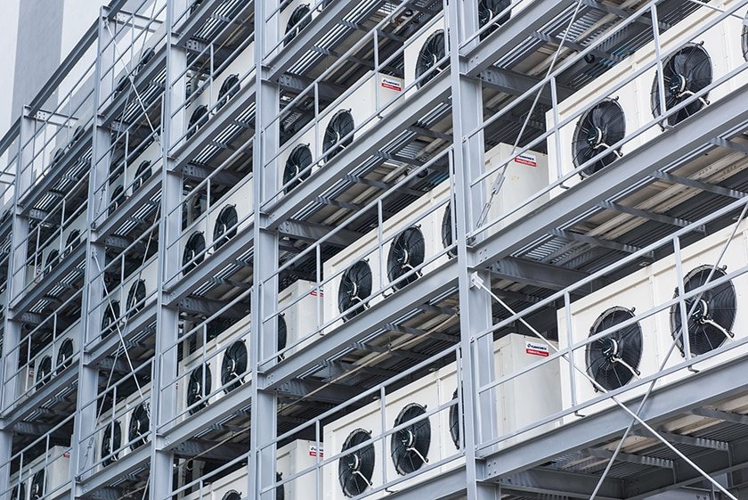 Đồng hành với hệ thống UPS là hệ thống điều hòa chính xác IT cooling với 17 cụm điều hòa công suất lên đến 100kW/cụm. Hệ thống được thiết kế với kiến trúc quạt âm sàn và cơ cấu làm lạnh chính xác chuyên dụng cho Data Center. Hệ thống sẽ vận hành liên tục 24/24 để duy trì nhiệt độ, độ ẩm lý tưởng cho các thiết bị máy chủ, phần mềm ứng dụng vận hành bất kể nhiệt độ ngoài trời lên đến 45°C. Thiết bị điều hòa chính xác của Mitsubishi Electric có chỉ số EER trên 4.0, cao hơn 30% so với các sản phẩm khác cùng loại có hệ số EER chỉ ở mức 2.8 - 3.5.